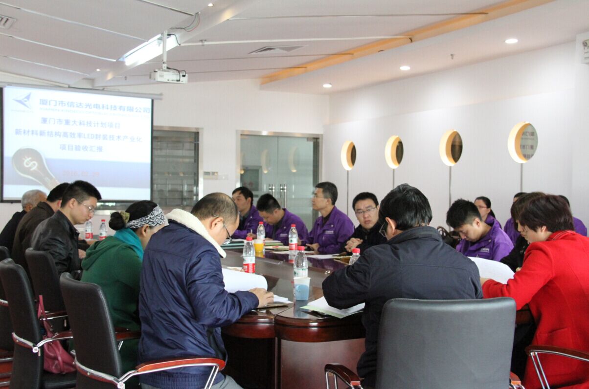 2016年3月1日,廈門市科技局組織技術(shù)和經(jīng)濟(jì)專家,對(duì)信達(dá)光電承擔(dān)的2014年廈門市重大科技計(jì)劃項(xiàng)目“新材料新結(jié)構(gòu)高效率LED封裝技術(shù)產(chǎn)業(yè)化”進(jìn)行驗(yàn)收,專家組聽取了項(xiàng)目單位的執(zhí)行情況報(bào)告,審查了驗(yàn)收資料,考察了生產(chǎn)現(xiàn)場(chǎng)。
