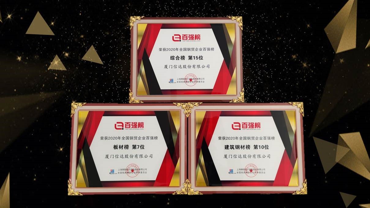 廈門信達憑借自身銳意進取、誠信經(jīng)營,在鋼鐵行業(yè)內(nèi)深耕多年,業(yè)務規(guī)模不斷擴大,在本次會議上榮獲“2020年度全國鋼貿(mào)企業(yè)百強”綜合榜第十五位,并位列板材榜和建筑鋼材榜前十強。此項榮譽是業(yè)內(nèi)對于廈門信達在鋼鐵領(lǐng)域?qū)I(yè)實力的高度認可。