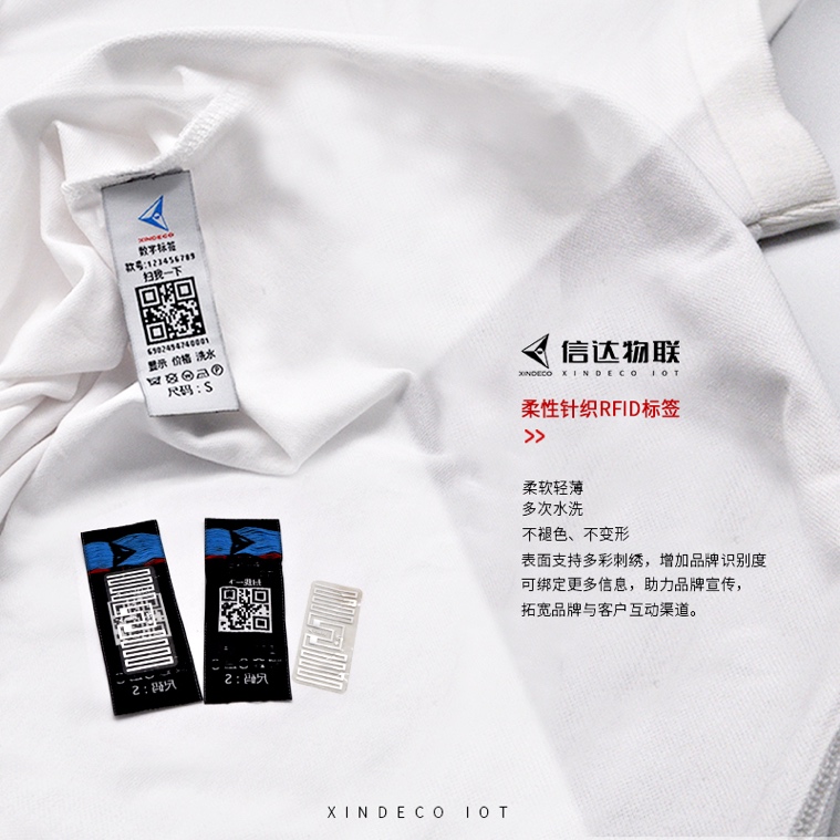 3、相較于傳統(tǒng)的RFID洗嘜,信達(dá)物聯(lián)二代柔性RFID標(biāo)簽更柔軟親膚,針織工藝可耐50次以上水洗不變形、不褪色,可伴隨產(chǎn)品長(zhǎng)期使用,終端消費(fèi)者可通過表面信息聯(lián)系品牌商,提高復(fù)購率。